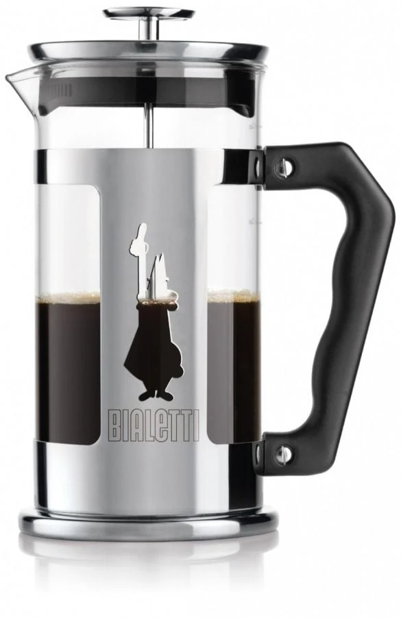 Bialetti Preziosa is an elegantly designed French press with a stainless steel frame, featuring the Alfonso Bialetti figure. With this French press you can quickly brew several cups of delicious coffee.