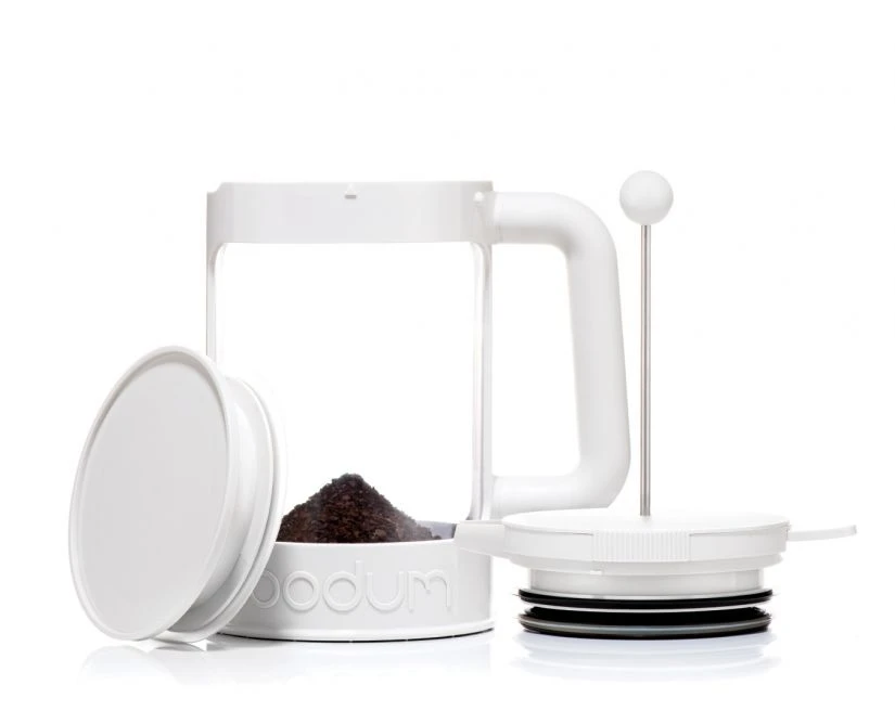 • Two lids: one for the fridge overnight, and one with a plunger to press down the coffee grounds in the morning
