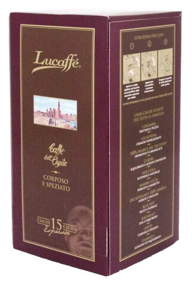 A very sweet and soft, but strong espresso coffee which contains plenty of Robusta. Caffè Dell’Ospite is roasted by Lucaffé mainly for café use, and the coffee has an excellent price-quality ratio. Excellent in milk coffees such as cappuccinos and lattes.