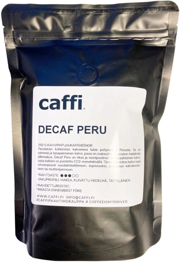 Caffi’s decaffeinated coffee comes from Peru. It is a smooth and nutty coffee with a sweet herbaceousness and an aftertaste of dried fruit. A well balanced and versatile dark medium roast coffee for filter coffee maker, espresso machine, grinding machine or moka pot.