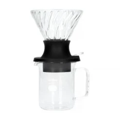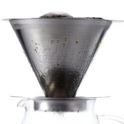 The upper container holds up to 24 grams of coffee. This amount is enough for 1-2 people.