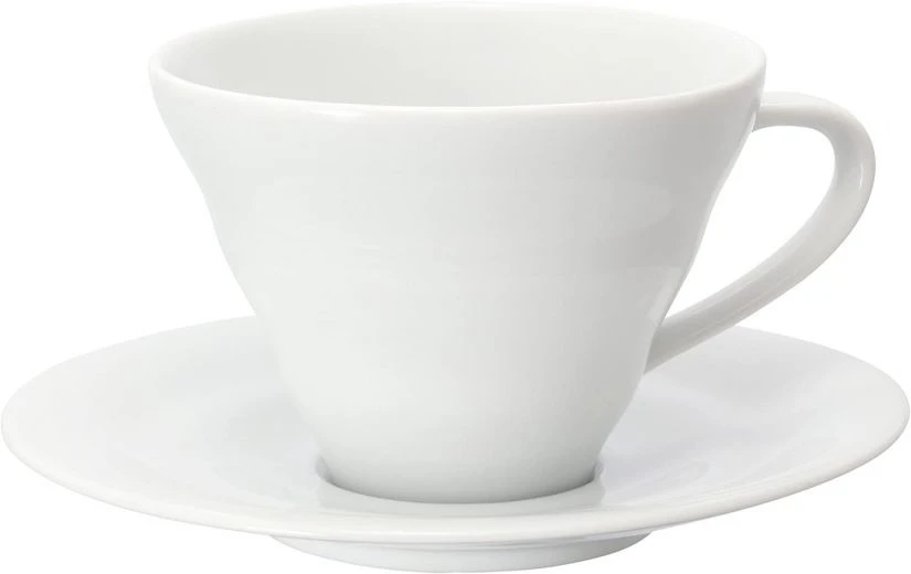 Stylish Hario V60 cup and saucer with the cult wave design. Handmade in Japan, from high quality porcelain. Created with use of a 400-year-old method.