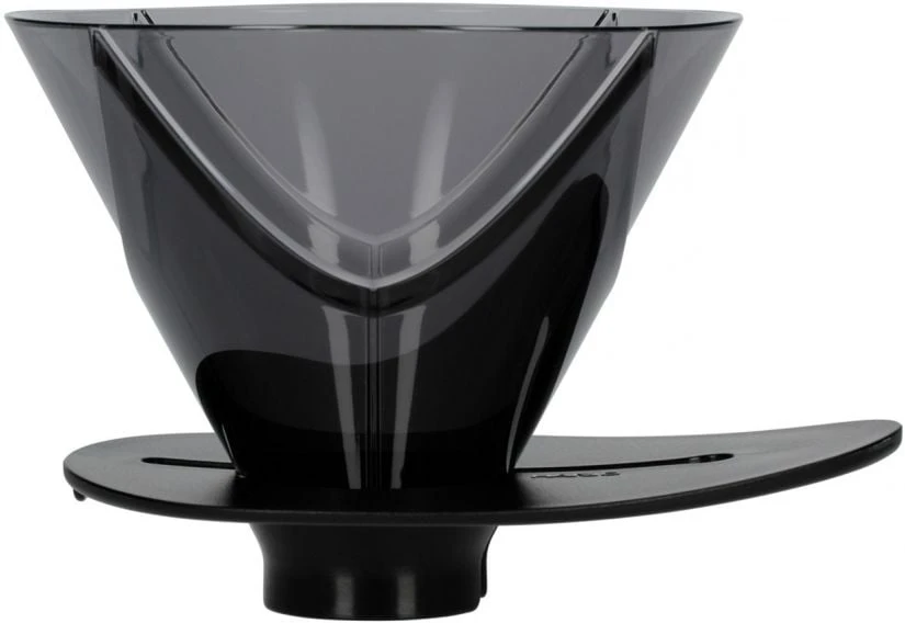 The Hario V60 Dripper Mugen lacks internal ribbing, so paper filters stick to it as coffee flows down the star-shaped grooves to slowly brew. The holder is removable, so you can also place the Mugen dripper as such on a stand to brew.
