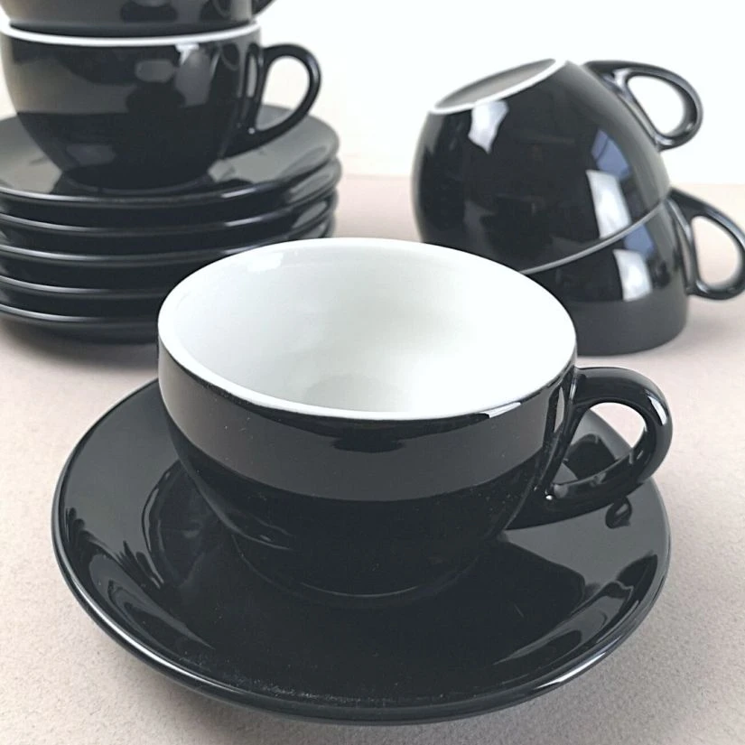 The thick black and white porcelain cups from IPA are made in Italy and they are the best choice for your coffee! Whether you enjoy your coffee as espresso, cappuccino or as a grande latte, you will love these durable, dishwasher safe cups. Make sure you preheat them before use on top of your espresso machine or with hot water as the porcelain will absorb the warmth, keeping your drink hot for a longer time.