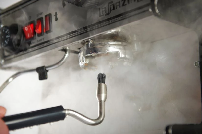 JoeFrex Cleaning Steam Brush, the ultimate steam brush for removing persistant stains and coffee residues like oils and grease from your espresso machine parts.