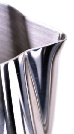 JoeFrex black milk pitcher with skull print. The pitcher is perfect for steaming and frothing milk foam for a single or double cappuccino or latte macchiato. Ideal spout for Latte Art.