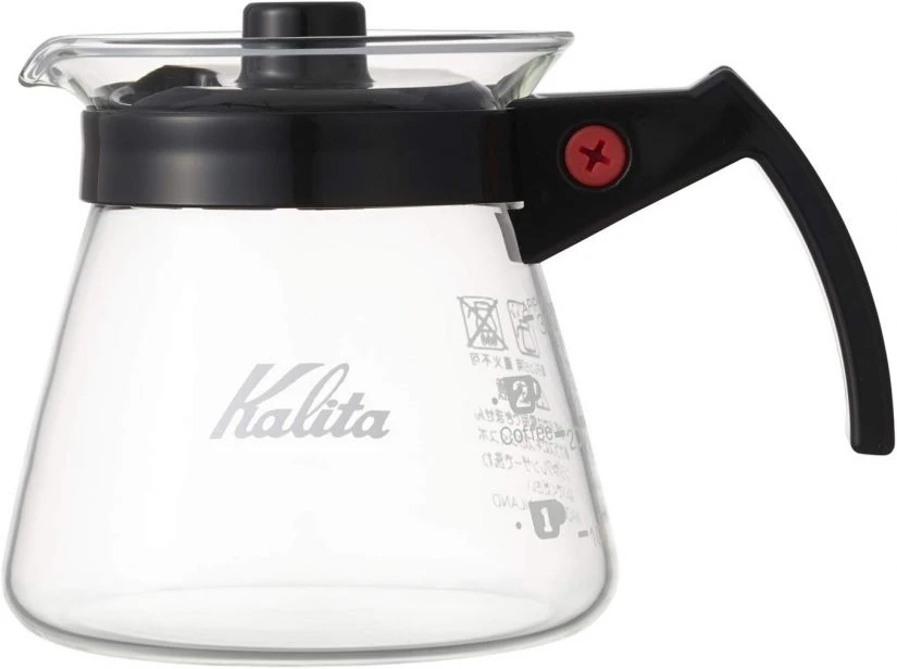 The Kalita Glass Server N coffee server with black handle is made of heat resistant glass and fits perfectly with the Kalita Wave Dripper as well as other major stand alone drippers including Hario V60. Its plastic handle facilitates coffee serving and the lid provides better heat retention. The server is microwave and dishwasher safe. The server has an inprinted scale which allows you to brew precisely the desired quantity of coffee.