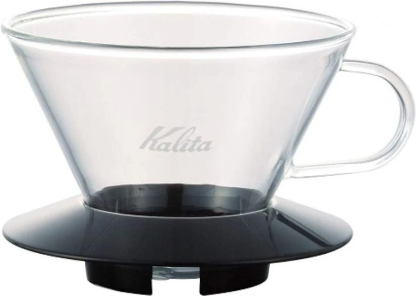 The Kalita Glass Wave Dripper # 185 has a cone shaped and flat-bottom design with three triangulated holes. The dripper is used with patented Wave paper filters, and it has crystal clear glass walls. The flat-bottom slows down the draining to encourage a more balanced and consistent coffee extraction. The Wave filters force the coffee grounds and water to remain in contact for the entire brew, encouraging even more consistency and balance. The Wave dripper fits with the Kalita glass server or can go directly on top of your coffee cup.