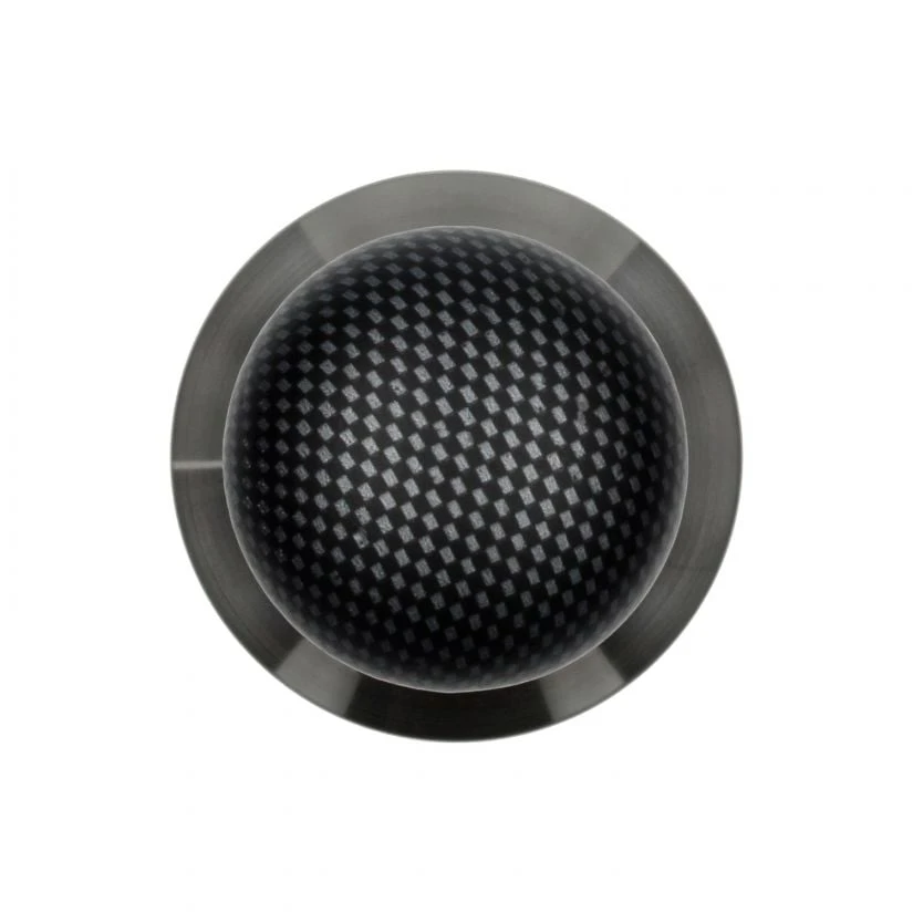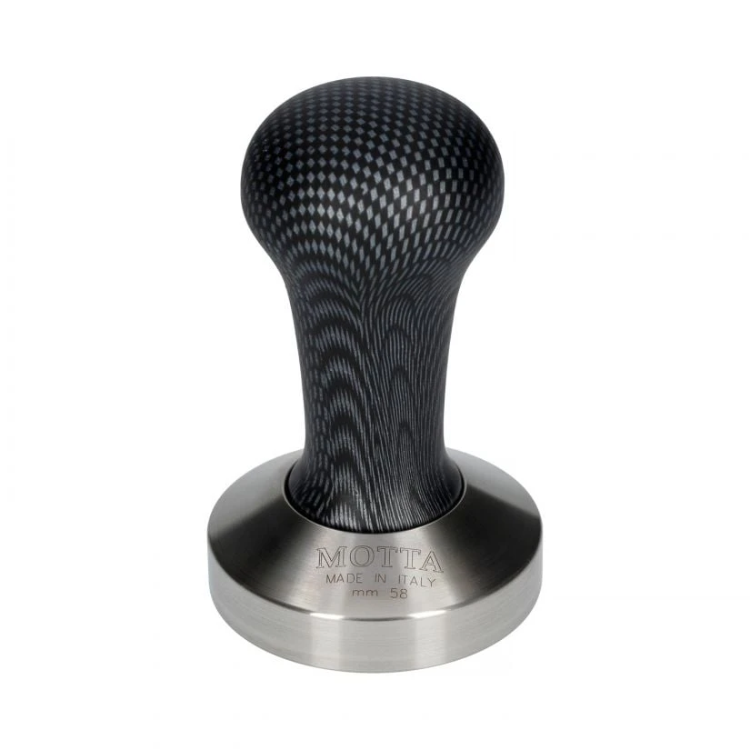 Motta Carbon Look 58 mm tamper made of stainless steel. Handle decorated with a carbon look pattern.