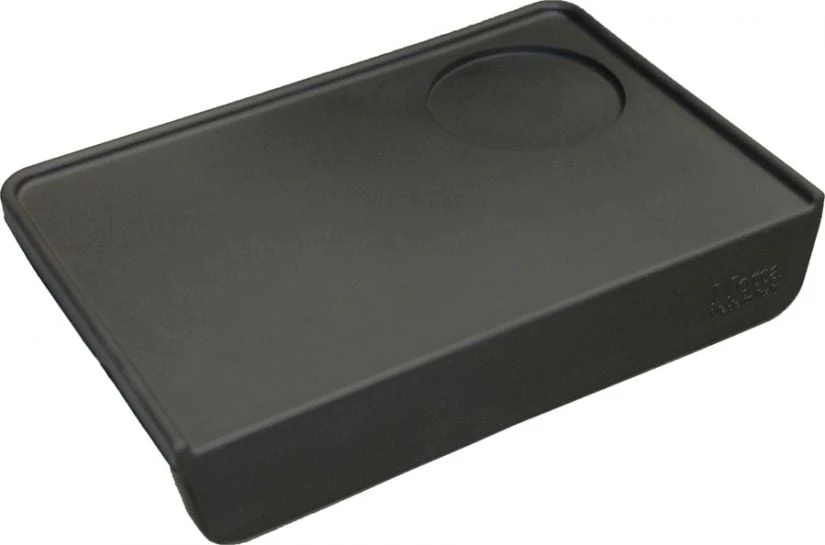 The mat is 24 cm wide and 16 cm deep, offering a lot of space. The mat has higher edges, keeping the ground coffee on the mat. The mat is made in Italy out of food grade rubber, and it has a separate slightly deeper place in the corner for the tamper.