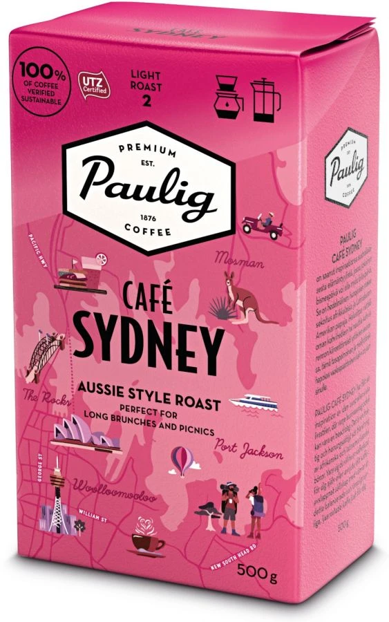 Café Sydney is a fruity, honey-sweet light roasted blend of African and Latin American coffee beans. Whether you prefer to enjoy your coffee all by yourself or casually with friends, this balanced and pleasantly acidic roast is just for you! This coffee is particularly suitable as filter and drip coffee.