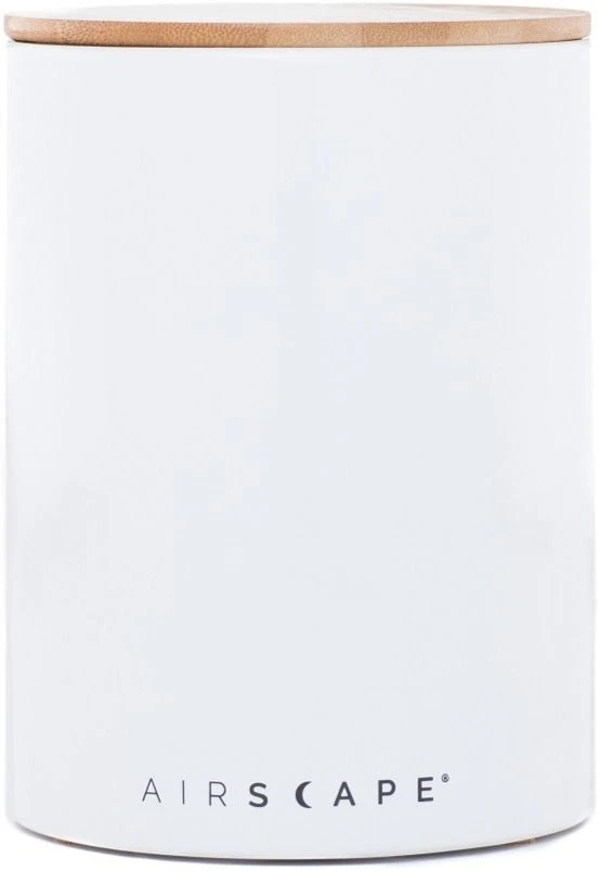 The original Planetary Design Airscape Ceramic coffee & food storage canister with a patented plunger lid removes and locks out air and humidity creating airless food storage; extends the life of coffee, tea, flour, sugar, cereal, cookies, seeds, herbs, nuts, pet food or any perishable goods.