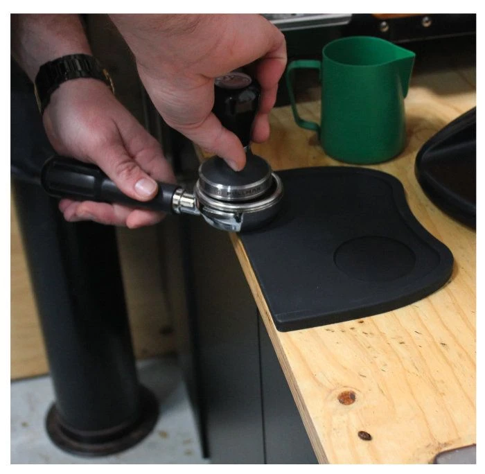 The Rhinowares Bench Tamper Mat is made from thick and durable food grade silicon rubber. Protect both the bench and portafilter with this generous size (206 x 146 mm) ‘industrial’ quality work surface.