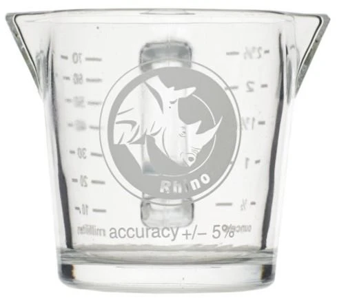 Rhinowares has answered the call for a double-spouted shot glass that combines durability and functionality. This 80ml handled shot glass is perfect for pulling double shots. Pull a double espresso shot in this glass and pour it neatly in a tall latte glass. The handle protects fingers from the heat of a freshly dropped shot. Graduated measurement marks make it so easy to get the shot right.