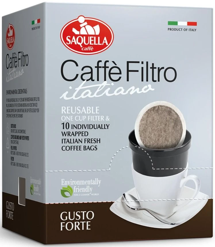 The Saquella Caffé Filtro Gusto Forte reusable one cup filter is designed to allow you to enjoy high quality genuine Italian filter coffee anywhere, anytime with no waste plastic.