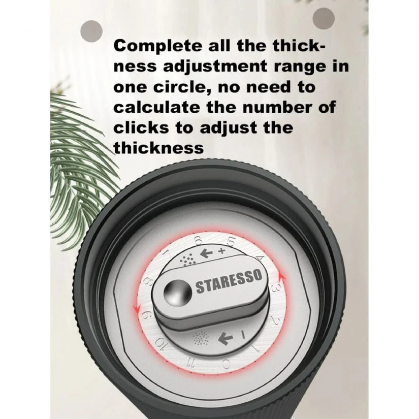 Thanks to the high quality stainless steel gear set, the STARESSO Discovery coffee grinder can grind any level of coffee, whether it’s a light, medium or dark roast coffee.