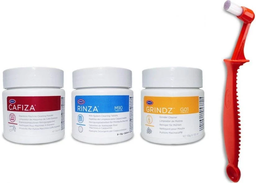 The Cafiza Café Starter Kit features trial-sized versions of cleaning products for espresso equipment, grinders, steam wands and batch brewers.