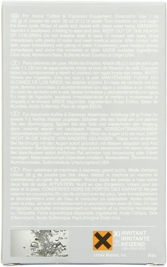 - For Complex Maintenance – For complete maintenance use with Urnex Coffee Machine Cleaning Powder