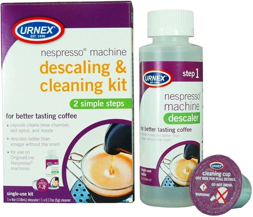The Urnex Nespresso Descaling & Cleaning Kit is a two-step cleaning kit designed to work with all Original Line Nespresso machines.