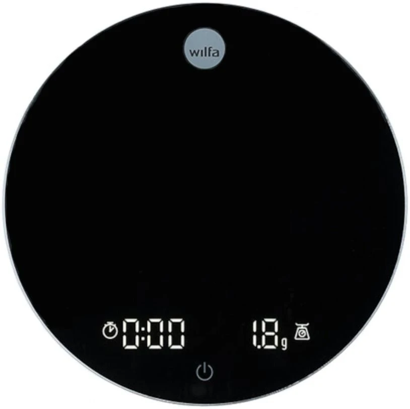 Versatile Wilfa SVART Uni KS1B-T2 coffee and kitchen scale that weighs accurately with a range of 0.1 grams, LED display and the option to connect to Wilfa’s app via Bluetooth.
